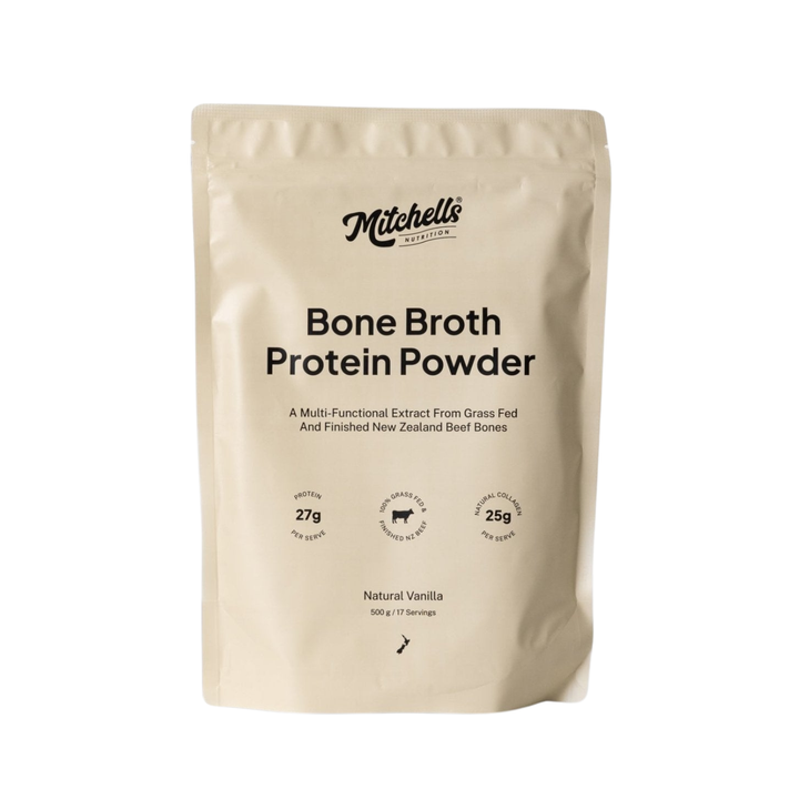 Our best-selling, multi-functional 100% Grass-Fed Bone Broth Protein Powder. Bone broth is the most natural and easily digestible source of protein. Boosted with naturally occurring collagen, think of it as a total body support for joints, bones, muscles, skin, hair, and nails- ideal for any age at any stage.Our Natural Vanilla flavour is gluten-free, dairy-free, contains just 3 natural ingredients and is packed with 27g of protein per serve.