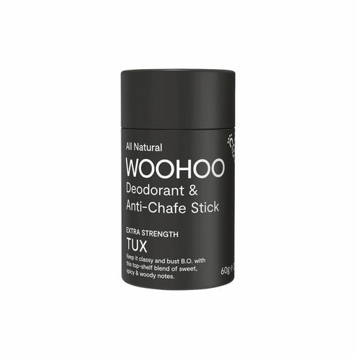 The 100% natural, 100% effective Woohoo Tux is all class. This extra strength, all natural deodorant will banish body odour in style, keeping you fresh all day and into the night. The bergamot and patchouli scent is a top-shelf blend of sweet, spicy and woody notes. Debonair. Suave. Charming. Watch out, this one will sweep you off your feet.