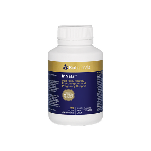 NEW LOOK CAPSULE. InNatal® is an iron-free formula specifically formulated to support women's preconception health, a healthy pregnancy, and healthy foetal development. It provides several key nutrients including iodine, vitamin D3, zinc, choline and the active forms of folic acid - folinic acid and 5-methyltetrahydrofolate (5-MTHF). Each daily dose provides 500 micrograms of folic acid in its active forms.