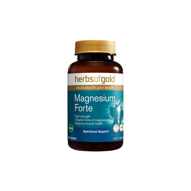 Herbs of Gold Magnesium Forte contains four organic forms of magnesium that are well absorbed in the body to support healthy muscle contraction function and bone health.