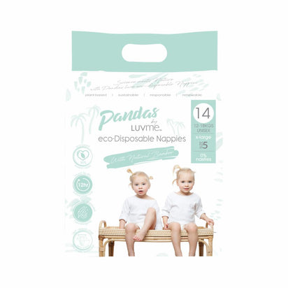 Luvme Pandas Bamboo nappies are made from 85% biodegradable bamboo material and are incredibly kind to the Earth, taking only 45 days to biodegrade. They are hypoallergenic, dermatologically-tested and free from lotions, fragrance, latex, pesticides, harsh chemicals and other nasties. Pandas bamboo nappies have 360 degree absorbent touch to dry quilted inner lining which ensures no nappy rash.