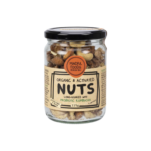 The best activated nuts you'll sink your teeth into! Hands down! These premium quality organic mixed nuts have been activated in probiotic kombucha, filtered water and Australian rock salt. Mindful Foods' nuts are incredibly light and crunchy, easy as pie to digest (actually, easier than pie!), and a fantastic addition to any salad or snack session. The mixed nuts have been soaked overnight, then slowly dried below 60°Celsius in a state-of-the-art dehydrator using closed circuit technology, so as to bring you the most delicious, nutritious, clean food possible.