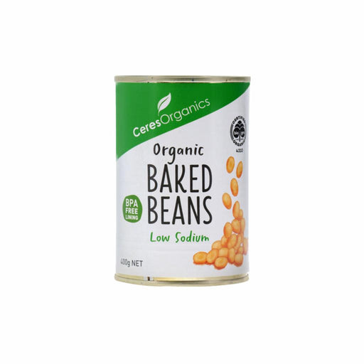 Ceres Organics Baked Beans are made with organically grown navy beans, cooked in a gentle tomato sauce, and delicately seasoned to create a natural "homemade" taste. You'll find nothing artificial here - no flavour enhancers, additives or preservatives. Just real ingredients and real good flavour. High in protein and dietary fibre, yet low in sodium, they're ideal as a quick and easy meal. Great on toast, mixed with veggies, or as a stuffing for baked potatoes.