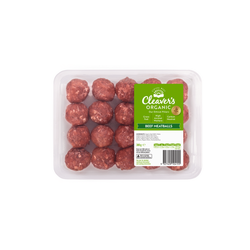 *SUBJECT TO AVAILABILITY*All of the taste and better for the planet!Why make your own when we've done all the hard work for you? Whether you use them in your favourite pasta dish, hearty winter soup or even as a pizza topping, Cleaver's Organic Beef Meatballs will add the benefits of using delicious natural beef to your meals. Our mouth-watering beef meatballs have the following qualities: