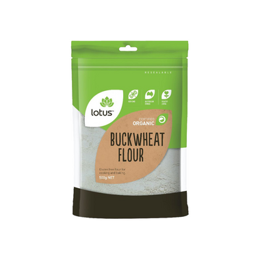 Lotus Organic Buckwheat Flour is certified organic. It is non gmo and suitable for vegetarians. Buckwheat is often mistaken as a grain, but is actually the seed of a plant related to rhubarb. Despite its name, buckwheat contains no wheat or gluten. It's a great gluten free alternative to regular flour in pastas, noodles, pancakes and baked goods.