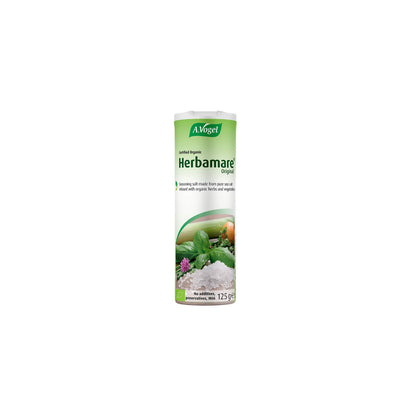A.Vogel Herbamare® is a herbal seasoning salt prepared from a combination of 12 fresh, organically grown herbs and vegetables made according to the original formula of the famous Swiss Naturopath A.Vogel. The fresh ingredients are combined with natural sea salt and allowed to steep for up to 12 months. The moisture is then removed by a special vacuum process at low temperature, allowing all the goodness of the ingredients to be absorbed by the salt crystals.