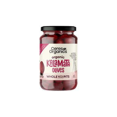 At Ceres Organics we believe in the integrity of 'real' plant-based ingredients. These Kalamata Olives are carefully selected from organic olive trees, grown under the mediterranean sun. Plump and flavourful, they're awesome in salads, pasta, or simply straight from the jar!