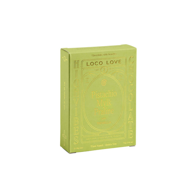 A silky pistachio ganache, dotted with lightly caramelised pistachio pieces. A balance of creamy and crunchy. Sweetened with mineral-rich natural sweeteners and enrobed in our signature mylk chocolate, spiked with beauty mushroom tremella.