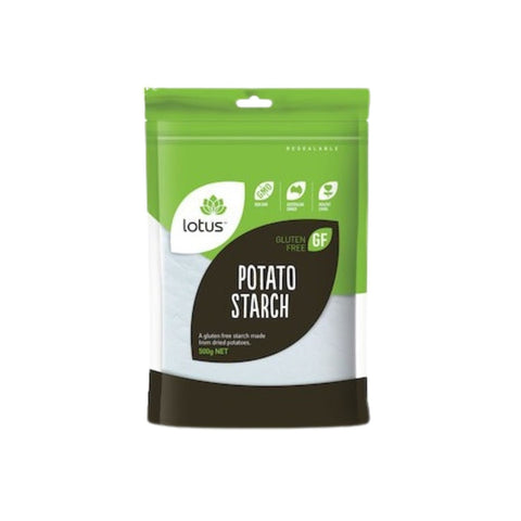 Lotus Potato Starch is made from the dried starch of potatoes. Potato starch is a slippery, pure white and very fine flour useful in baking or as a thickener.