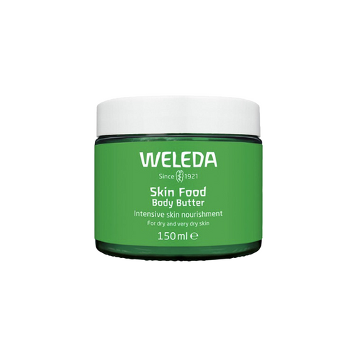 Harnessing the powers of Weleda's original and well-loved Skin Food, our fragrant body butter nourishes your skin with a unique combination of botanical extracts. Pansy, calendula and chamomile help to soothe dry skin, while organic shea and cocoa butter leave it intensely nourished and petal-soft. The fast-absorbing butter leaves a non-greasy skin feel while providing lasting hydration. The all-natural fragrance carries a touch of lingering sweet orange, aromatic lavender and balsamic benzoin. Let the luxury soak in, for supple skin.