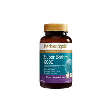 Herbs of Gold Super Brahmi 6000 contains Bacomind®, a clinically trialled* extract of Bacopa monnieri to support cognitive function, mental clarity and memory.
