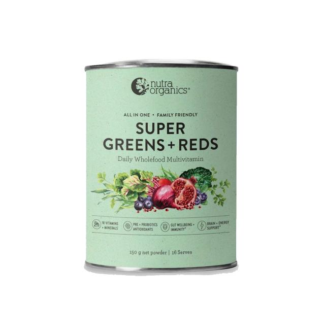 Plus, with a synbiotic blend containing prebiotics and probiotics to support digestive health^, plant protein and a restorative & cleansing herbal blend, Super Greens + Reds is the most comprehensive, potent & bioavailable multivitamin formula using only natural wholefood sources.