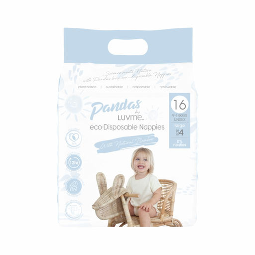 Luvme Pandas Bamboo nappies are made from 85% biodegradable bamboo material and are incredibly kind to the Earth, taking only 45 days to biodegrade. They are hypoallergenic, dermatologically-tested and free from lotions, fragrance, latex, pesticides, harsh chemicals and other nasties. Pandas bamboo nappies have 360 degree absorbent touch to dry quilted inner lining which ensures no nappy rash.